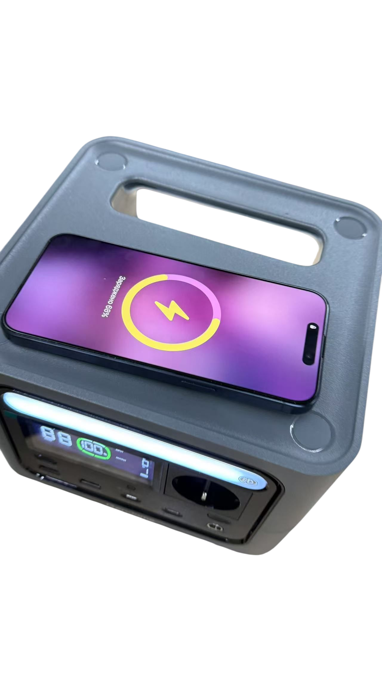 Головна фішка — надпотужний порт USB-C PD 3.1 (140W), який заряджає сучасні ноутбуки (навіть MacBook Pro 16″) на повній швидкості без зайвих блоків живлення. Має вбудовану бездротову зарядку та LED-лампу. Ідеальна для Starlink (3-4 години роботи) та дронів.