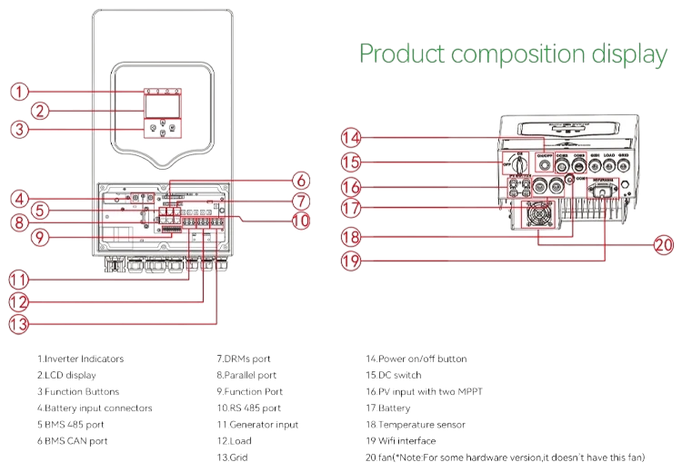- Smart Port (Генераторний порт): Унікальна функція ринку. Використовуйте цей вхід для підключення генератора (з повним автозапуском!) або як вихід “Smart Load” для скидання надлишків енергії на бойлер.
