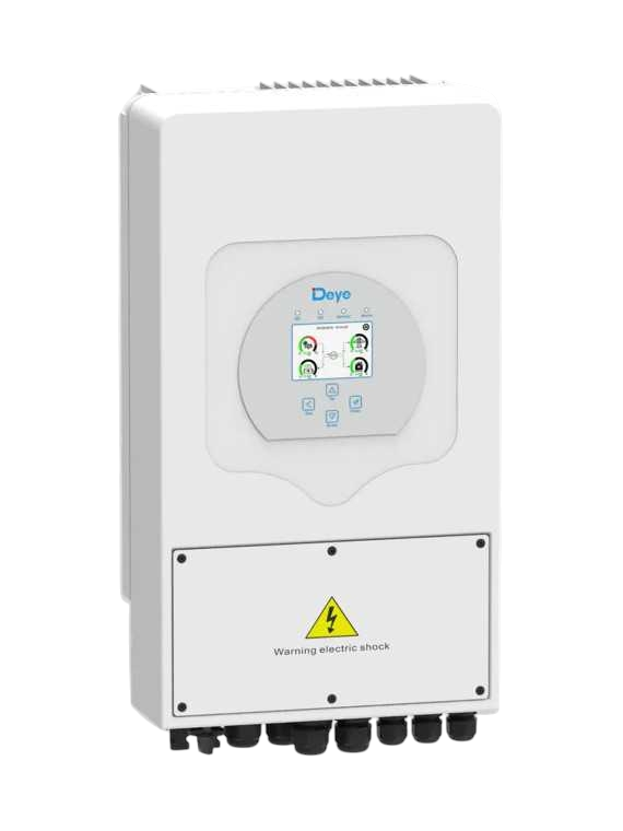 Deye SUN-5K-SG03LP1-EU — це інвертор преміум-класу, “золотий стандарт” енергонезалежності в Україні. Низьковольтний (48В) гібрид з кольоровим сенсорним екраном, який вміє автоматично керувати генератором, змішувати енергію сонця та мережі, а також розширювати потужність вашого будинку.